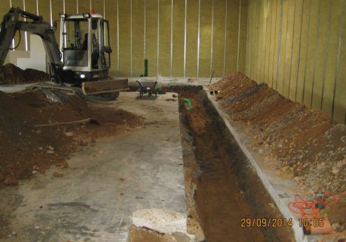 - Aufbereiten des ölbelasteten Beton-Hallenbodens durch Strahlen/Schleifen und Spezialabdichtung,- Erweiterung der Entwässerungsanlagen (Grundleitungen) einschl. Betonabbruch in Teilbereichen der Bodenplatte und Wiederherstellung der Bodenflächen unter Berücksichtigung von Aussparungen für bodengleiche Duschplätze,- Trockenbau der Wände und Decken, tlw. mit Brandschutzanforderungen,- tlw. Öffnung des Hallengiebels zur Schaffung von Flucht- und Rettungswegen sowie neuem Personaleingang,- Erweiterung bzw. Neubau von haustechnischen Anlagen (Heizung, Lüftung, Sanitär, Elektroinstallationen),- Innenausbau und Fußbodenbeschichtung mit Kunstharz